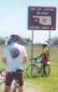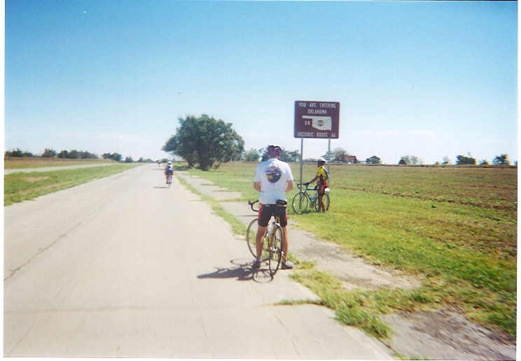 Bob taking a picture of Larry in front of the Oklahoma state-line sign. Oklahoma is Larry's native state. |
