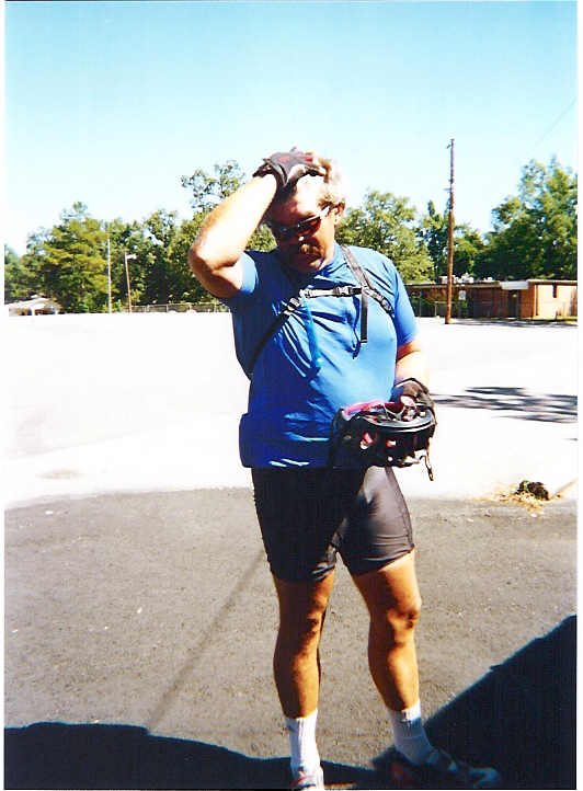 was back on my bike, Lon took off and I sprinted to catch him so I could draft