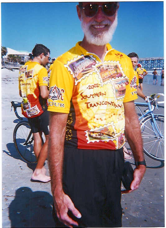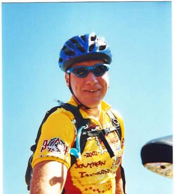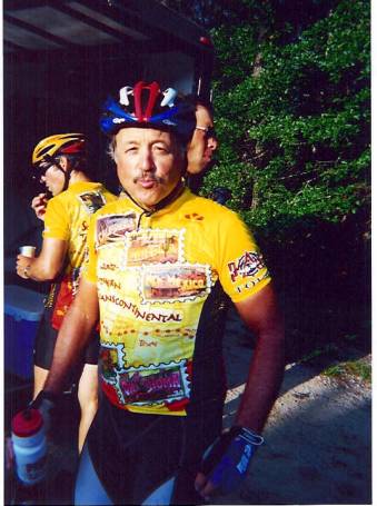 Crew member Jim from Wisconsin enjoying a refreshing beverage while rolling into the hotel one afternoon |