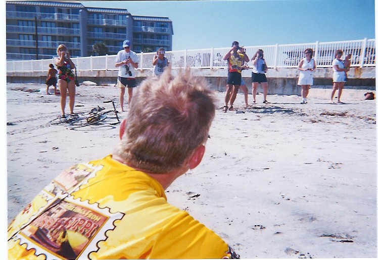 The water was much warmer than the Pacific at home, and I was able to spend nearly a full hour in the water, whereas if I do get in the water at home it's usually just for a few minutes. The water was really shallow, too, although the tide was extremely strong and I kept drifting south then having to trudge back through the water up the beach so I didn't end up in Florida. It was really exhausting, especially after the workout of the last twenty-five days. The waves were smaller than at home, though, so I didn't have to be as careful about not having them break on me accidentally and fill my face with water. The water is saltier, too, making me a little more buoyant. All in all, it was a satisfying way to end the trip, allowing myself to float and be rocked around by the waves and be pulled by the tide.