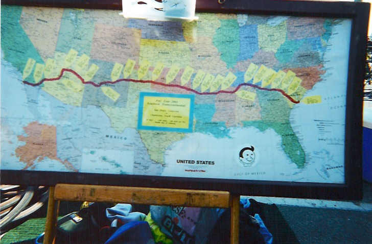 The map showing us reaching our final destination. As the trip progressed, Lon would darken in a section for every day that we rode. |