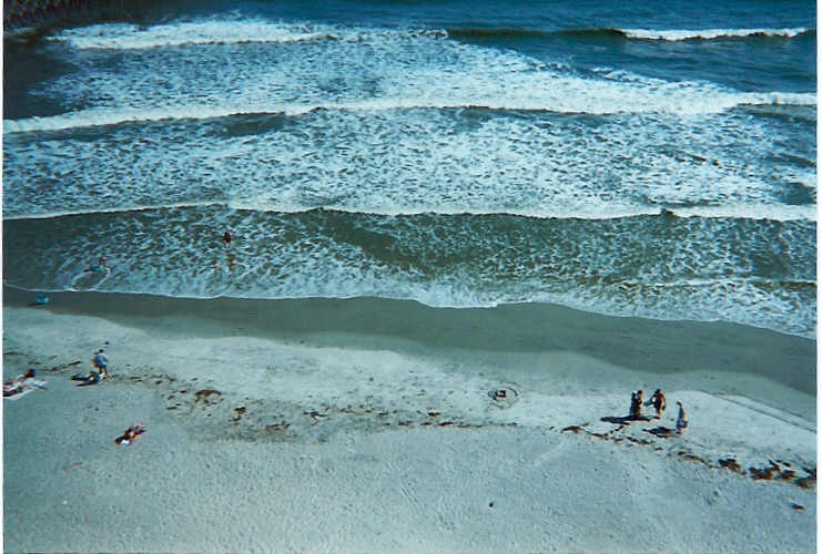 A view of Folly Beach from the balcony of my hotel window. I turned off the air conditioner and slept with the balcony door open all night so I could hear the sound of the waves crashing on the beach. |