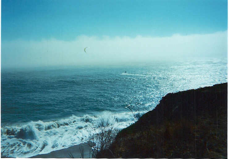 A parasailer zooming in and out of a thick fog bank. There were actually two of them out there and every time they made a U-turn it looked like they were jumping about six feet off of the water. It was pretty amazing to watch. |