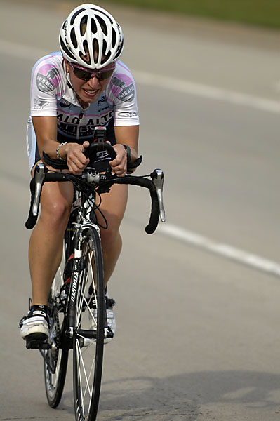 The race was hot from the gun because Laura Van Gilder from Lipton was working to wear down Christine and set up Kristin. After a few miles, we hit the crosswinds and she sat up there and guttered the whole field in a redlined effort. I had moved up and was in good position and working hard to hold on to where I was.