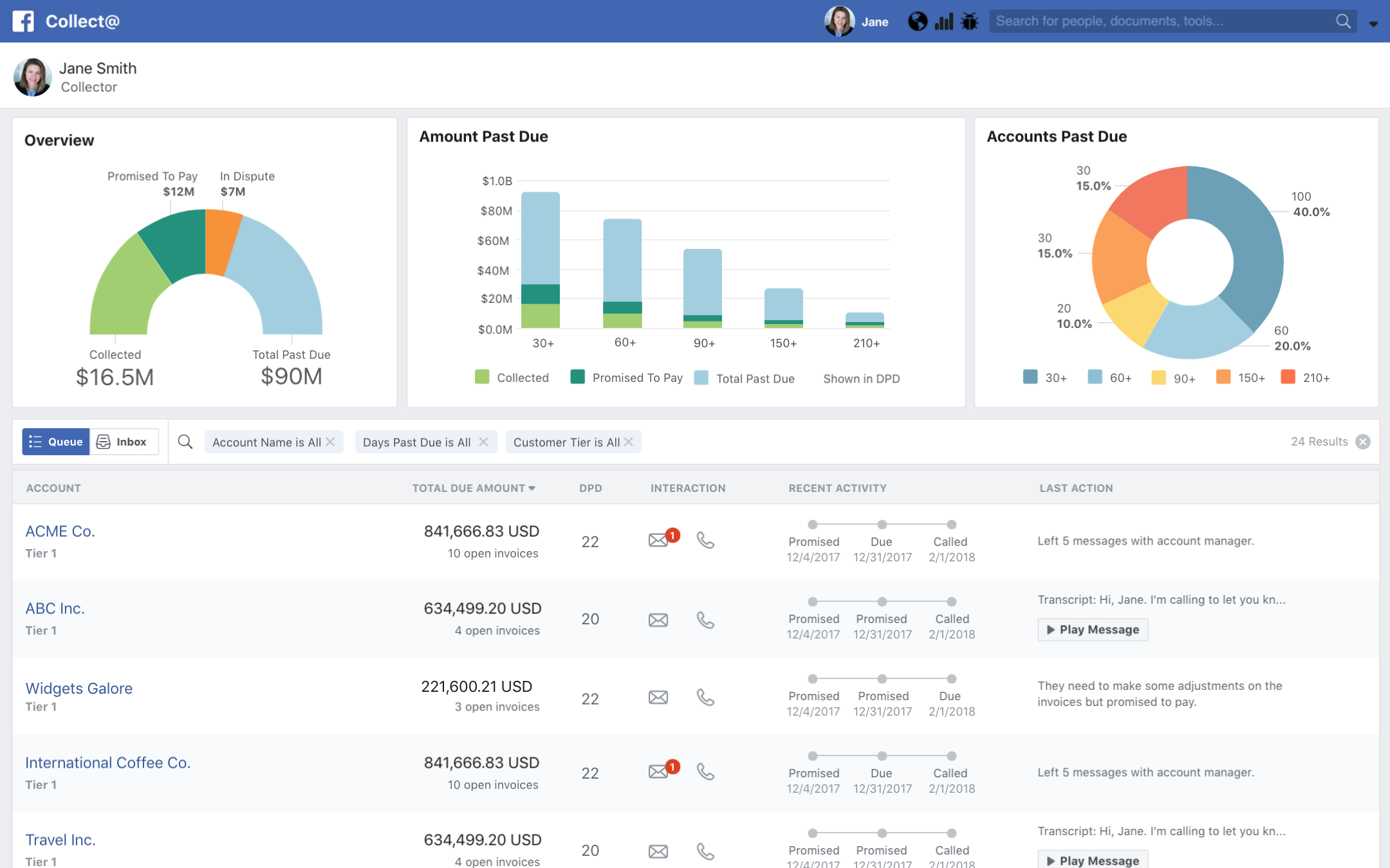 Landing page with dashboard—Collectors can quickly see how they're performing and what they need to do next