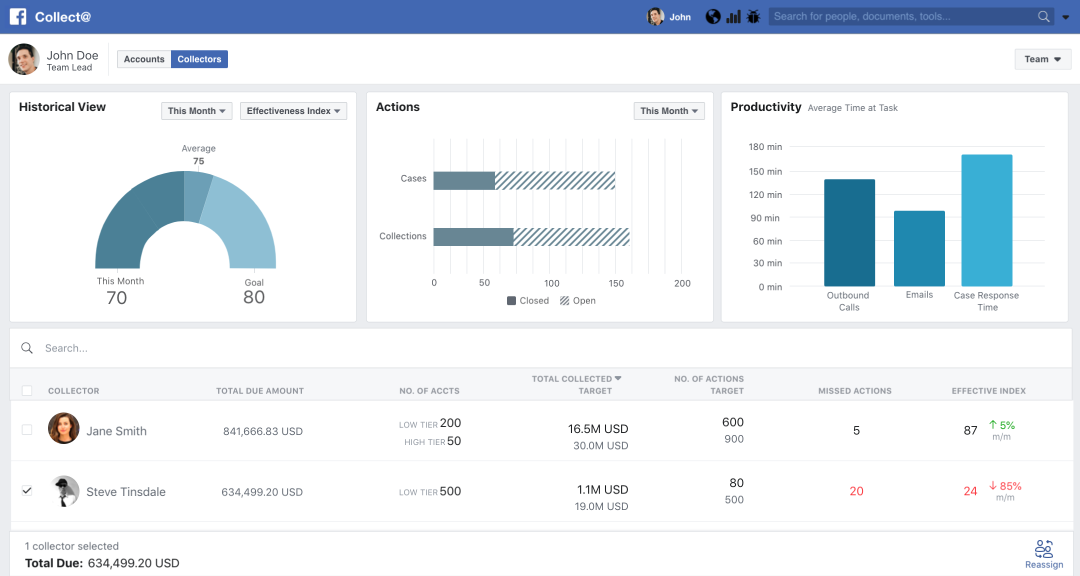 Team lead view—Managers can quickly see how agents are doing and reassign case load as needed.