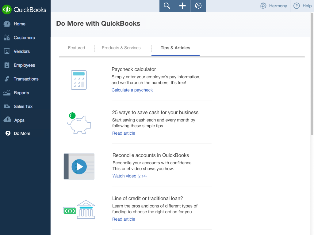 QuickBooks customers come from a wide range of backgrounds—many are new to owning a business and many have little or no formal training in accounting. Adding a resource area in-app creates a unique opportunity to customize tools and information to each customer. I explored designs for a series of rapid qualitative and quantitative tests to measure how to best offer resources that people need, when they need it.